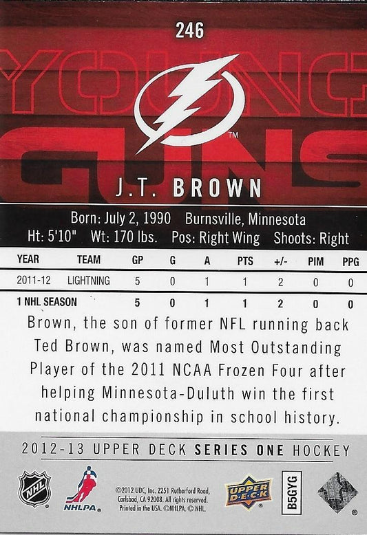 Signed J.T. Brown Young Guns 2012-13 Upper Deck Tampa Bay Lightning Rookie Card