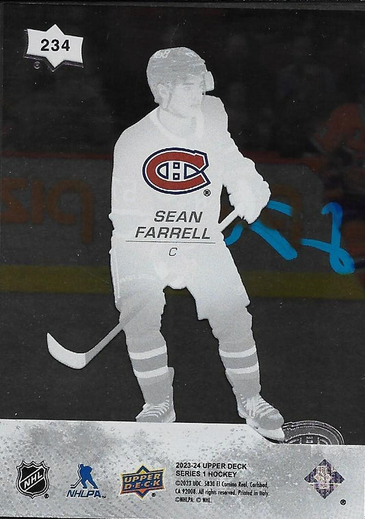 Signed Sean Farrell Young Guns Clear Cut 23-24 UD Montreal Canadiens Rookie Card