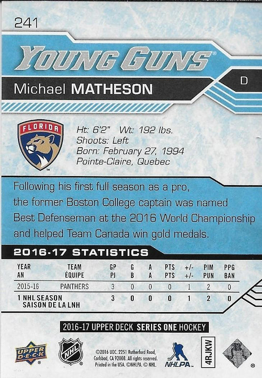 Signed Michael Matheson Young Guns 16-17 UD Florida Panthers Crd Private Signing