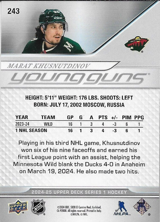Signed Marat Khusnutdinov 2024-25 UD Young Guns Minnesota Wild Rookie Card