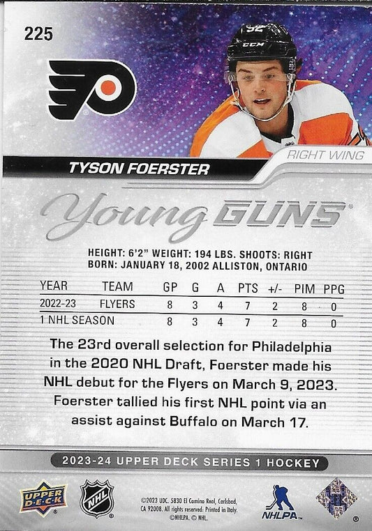 Signed Tyson Foerster 2023-24 UD Young Guns Philadelphia Flyers Rookie Card