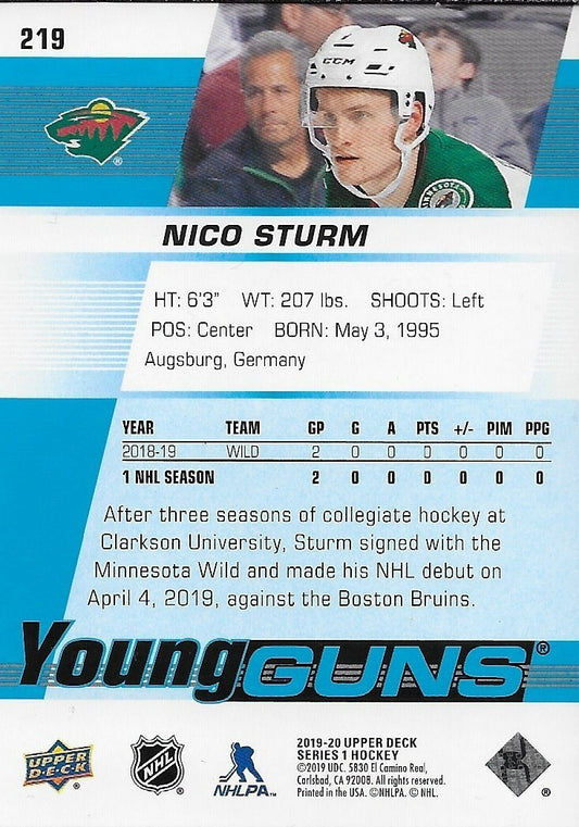 Signed Nico Sturm 2019-20 UD Young Guns Minnesota Wild Rookie Card