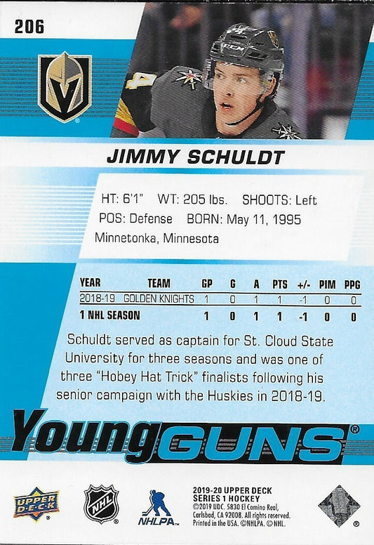 Signed Jimmy Schuldt Young Guns 2019-20 UD Vegas Golden Knights Rookie Card
