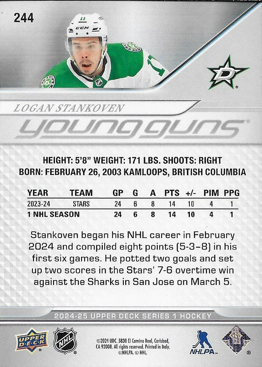Signed Logan Stankoven Young Guns 2024-25 UD Dallas Stars Rookie Card