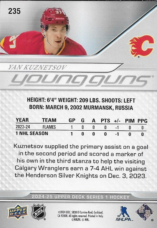 Signed Yan Kuznetsov Young Guns 2024-25 UD Calgary Flames Rookie Card