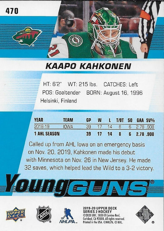 Signed Kaapo Kahkonen 2019-20 UD Young Guns Minnesota Wild Rookie Card