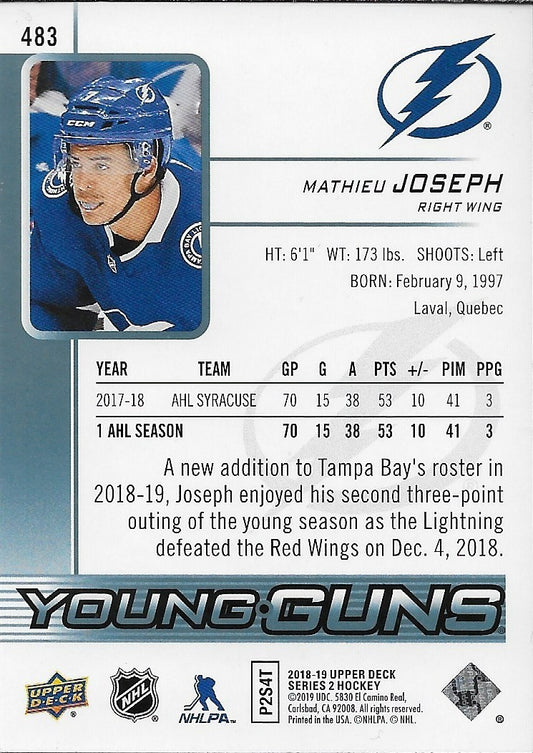 Signed Mathieu Joseph 2018-19 UD Tampa Bay Lightning Young Guns Rookie Card