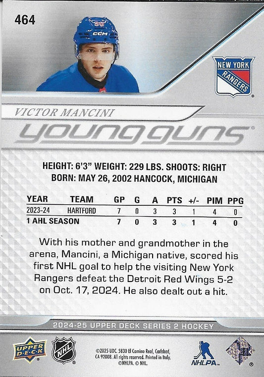 Signed Victor Mancini 2024-25 UD New York Rangers Young Guns Rookie Card