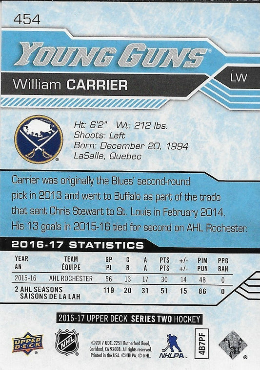 Signed William Carrier Young Guns 2016-17 Upper Deck Buffalo Sabres Rookie Card