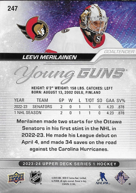 Signed Leevi Merilainen Young Guns 2023-24 UD Ottawa Senators Rookie Card Origin