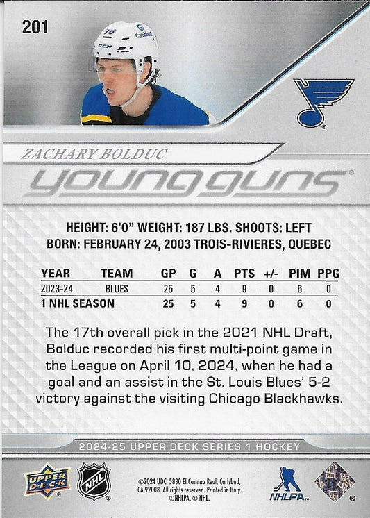 Signed Zachary Bolduc 2024-25 UD St. Louis Blues Young Guns Rookie Card