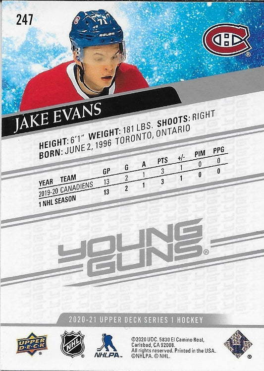 Signed Jake Evans Young Guns 2020-21 UD Montreal Canadiens Rookie Card