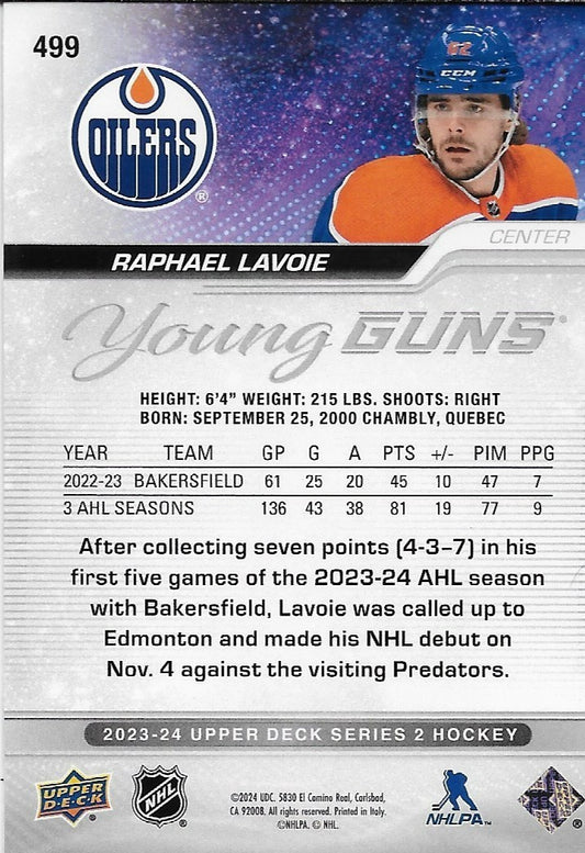 Signed Raphael Lavoie Young Guns 23/24 UD Edmonton Oilers Rookie Card