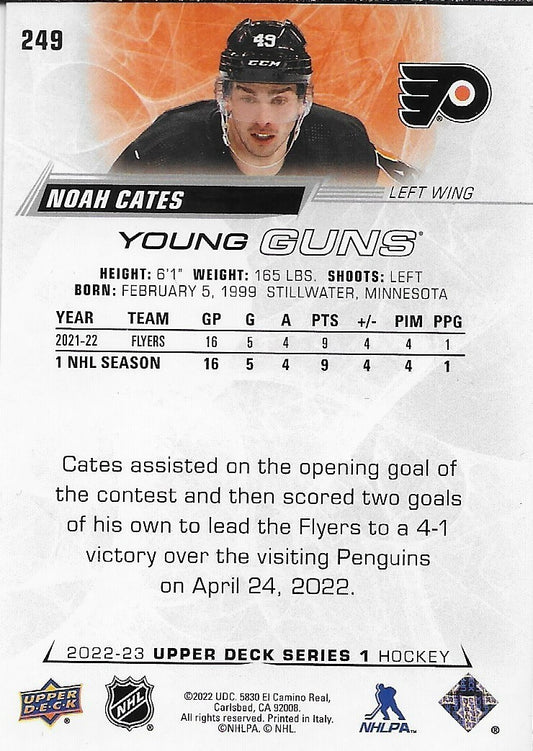 Signeded Noah Cates 2022-23 UD Philadelphia Flyers Young Guns Rookie Card