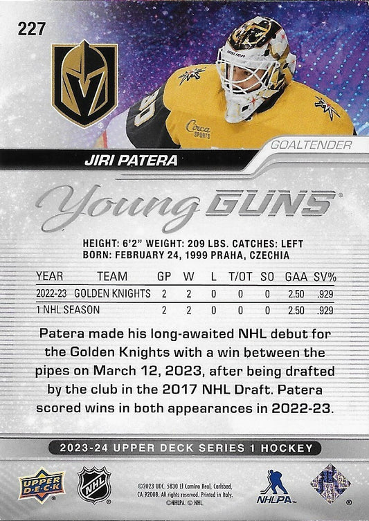 Signed Jiri Patera Young Guns 2023-24 UD Vegas Golden Knights Rookie Card