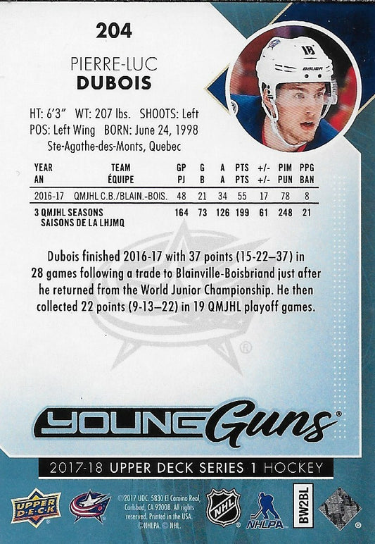 Signed Pierre Luc Dubois 2018-18 UD Columbus Blue Jackets Young Guns Rookie Card