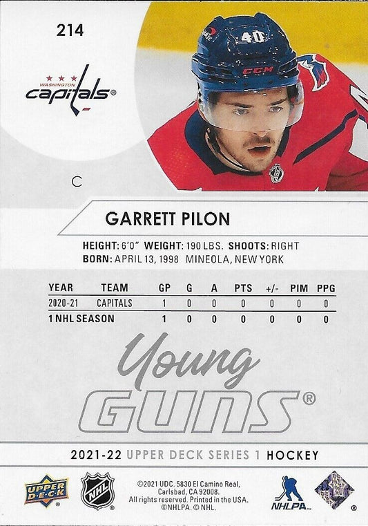 Signed Garrett Pilon Young Guns 2021-22 UD Washington Capitals Rookie Card