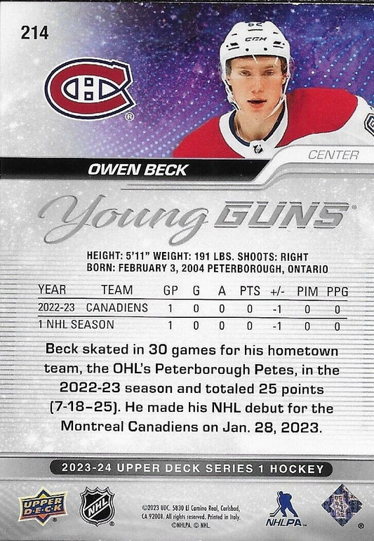 Signed Owen Beck Young Guns 2023-24 UD Montreal Canadiens Rookie Card Original