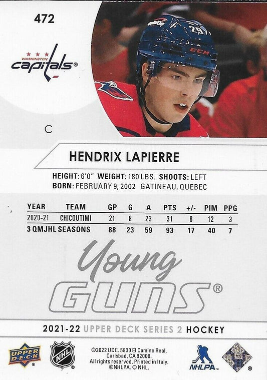 Signed Hendrix Lapierre Young Guns 2021-22 UD Washington Capitals Rookie Card