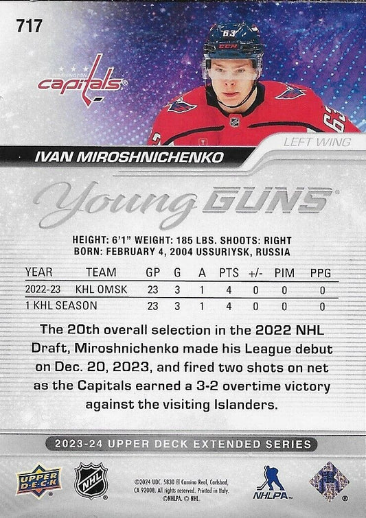Signed Tvan Miroshnichenko Young Guns 2023-24 UD Washington Capitals Rookie Card