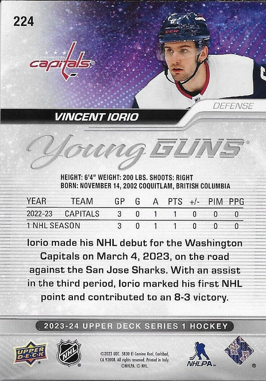 Signed Vincent Iorio Young Guns 2023-24 UD Washington Capitals Rookie Card