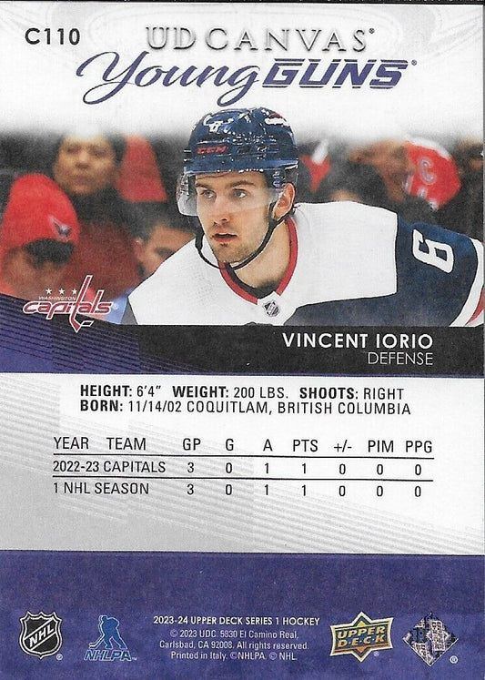Signed Vincent Iorio Canvas Young Guns 23-24 UD Washington Capitals Rookie Card