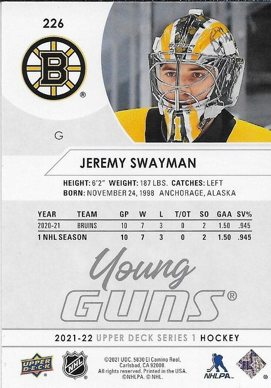 Signed Jeremy Swayman 2021-22 UD Young Guns Boston Bruins Rookie Card