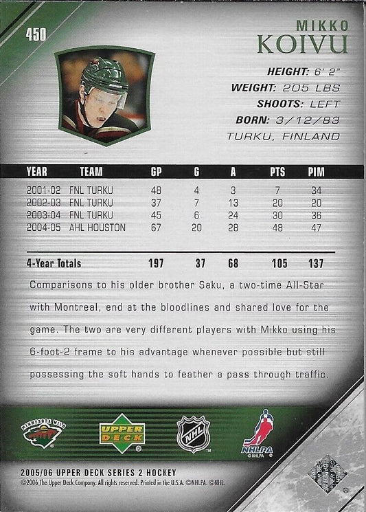 Signed Mikko Koivu Young Guns 2005-06 UD Autographed Minnesota Wild Rookie Card