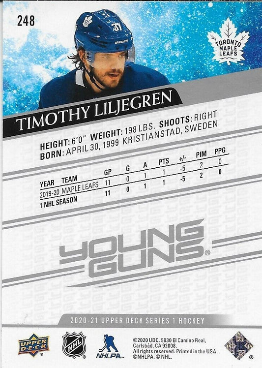 Signed Timothy Liljegren 2020-21 UD Young Guns Toronto Maple Leafs Rookie Card