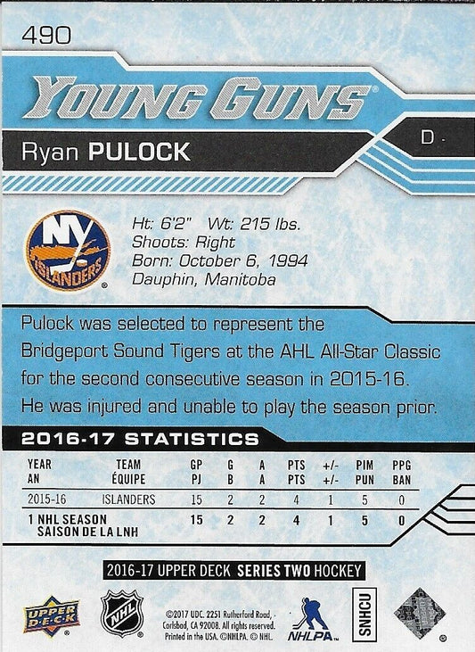 Signed Ryan Pulock Young Guns 2016-17 UD New York Islanders Rookie Card