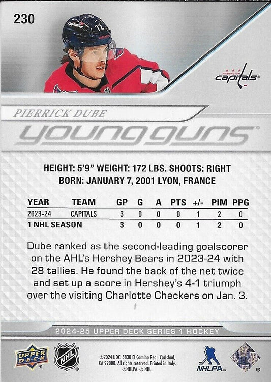 Signed Pierrick Dube Young Guns 2024-25 UD Washington Capitals Rookie Card