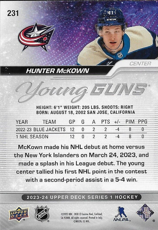 Signed Hunter McKown 2023-24 UD Columbus Blue Jackets Young Guns Rookie Card