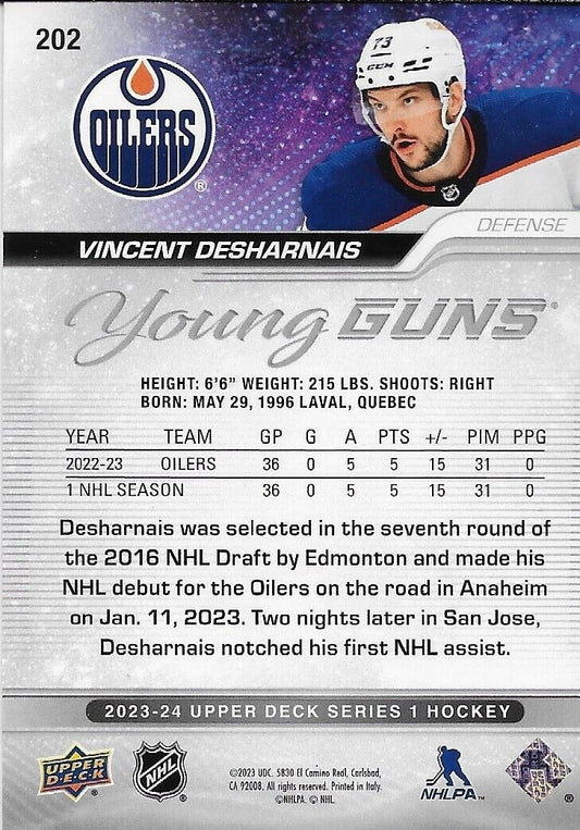Signed Vincent Desharnais Young Guns 23/24 UD Edmonton Oilers Rookie Card
