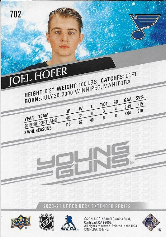 Signed Joel Hofer 2020-21 UD Young Guns St. Louis Blues Rookie Card #2 Original