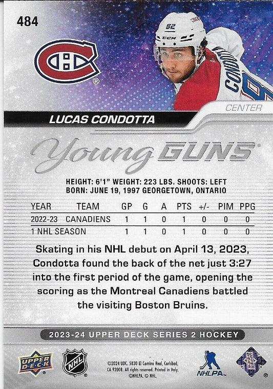 Signed Lucas Condotta Young Guns 2023-24 UD Montreal Canadiens Rookie Card