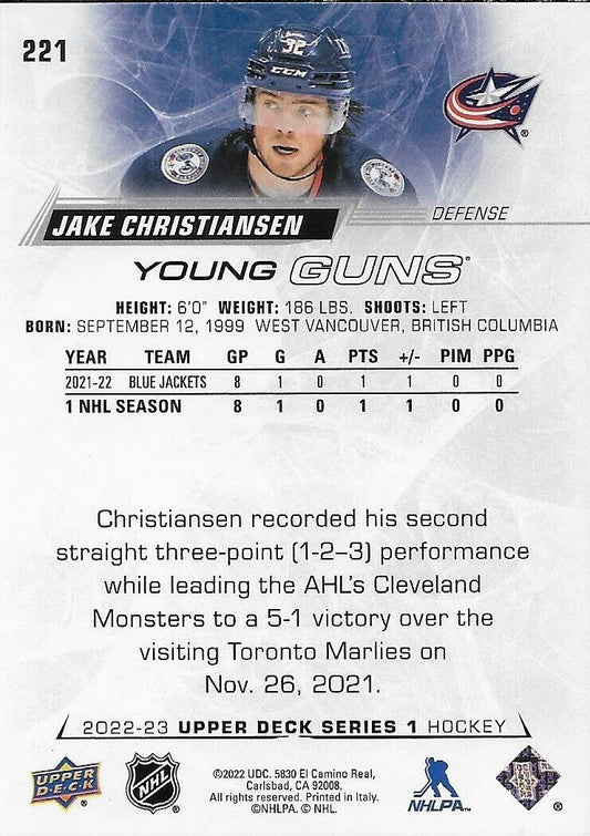 Signed Jake Christiansen 2022-23 UD Columbus Blue Jackets Young Guns Rookie Card