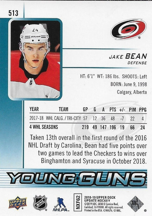 Signed Jake Bean Carolina Hurricanes 2018-19 UD Young Guns Rookie Card