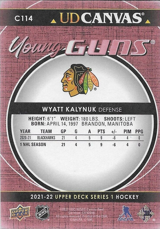 Signed Wyatt Kalynuk 2021-22 UD Chicago Blackhawks Young Guns Canvas Rookie Card