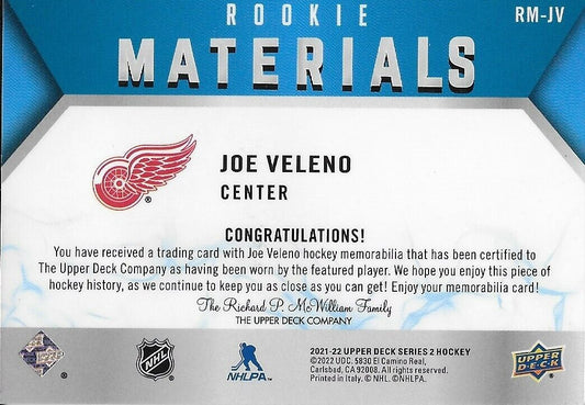 Signed Joe Veleno 21/22 UD Rookie Materials Detroit Red Wings Card RM-JV