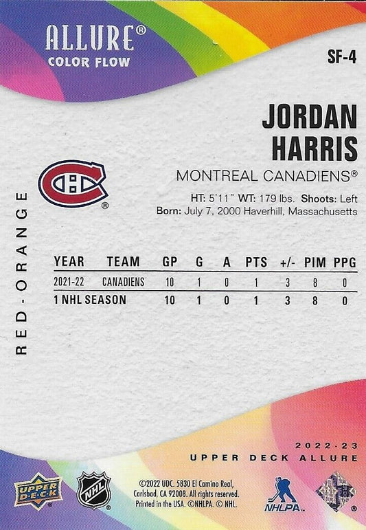 Signed Jordan Harris 22/23 Upper Deck Allure Color Flow Montreal Canadiens Card