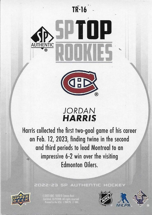 Signed Jordan Harris 22/23 UD SP Authentic SP Top Rookie Montreal Canadiens Card