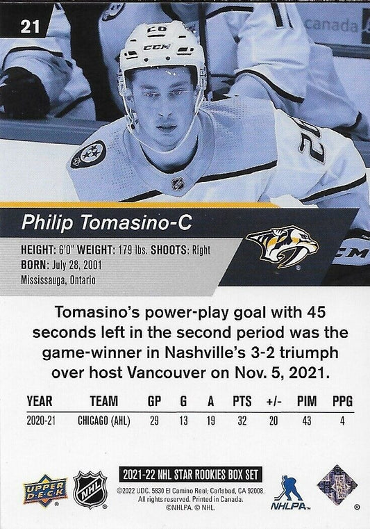 Signed Philip Tomasino 21-22 UD NHL Star Rookies Nashville Predators Rookie Card