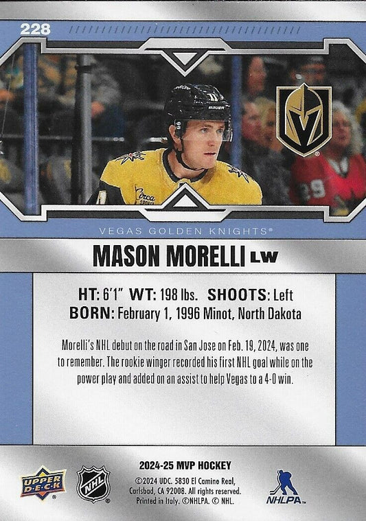Signed Mason Morelli 2024-25 UD MVP Hockey Vegas Golden Knights Rookie Card