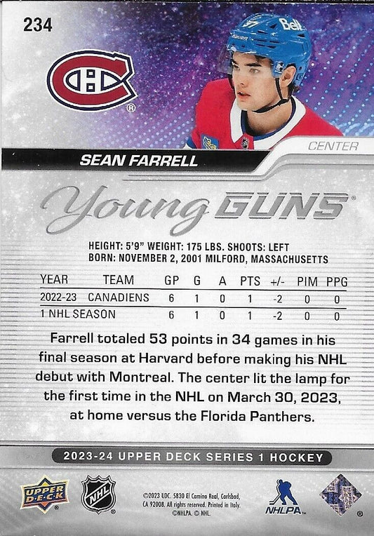 Signed Sean Farrell Young Guns 2023-24 UD Montreal Canadiens Rookie Card