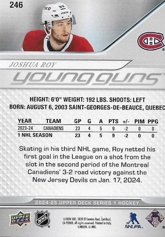 Signed Joshua Roy 24-25 UD Young Guns Montreal Canadiens Rookie Card 2 Original