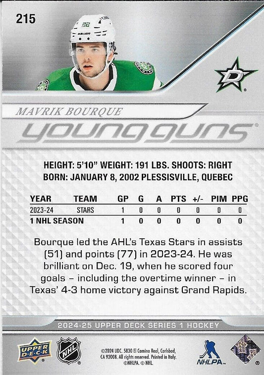 Signed Mavrik Bourque 2024-25 UD Young Guns Dallas Stars Rookie Card Original