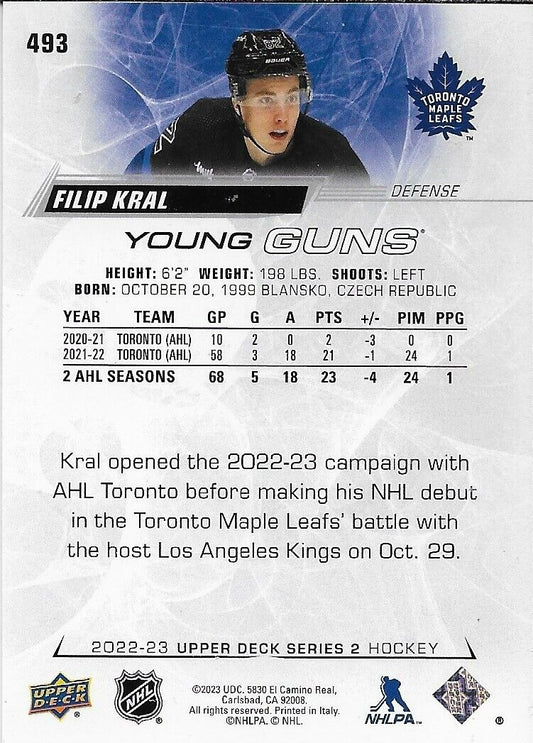 Signed Filip Kral 2022-23 UD Young Guns Toronto Maple Leafs Rookie Card Original