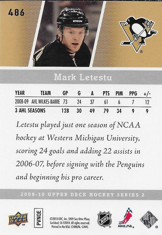 Signed Mark Letestu 2009-10 UD Pittsburgh Penguins Young Guns Rookie Card