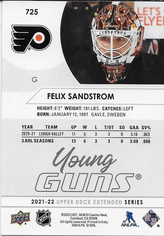 Signed Felix Sandstrom Young Guns 21-22 UD Philadelphia Flyers Rookie Card