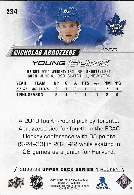 Signed Nicholas Abruzzese Toronto Maple Leafs 22-23 Upper Deck Young Guns Card 2